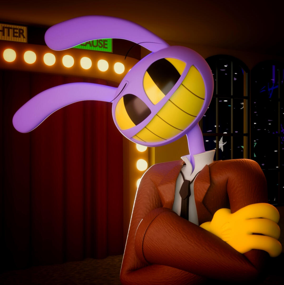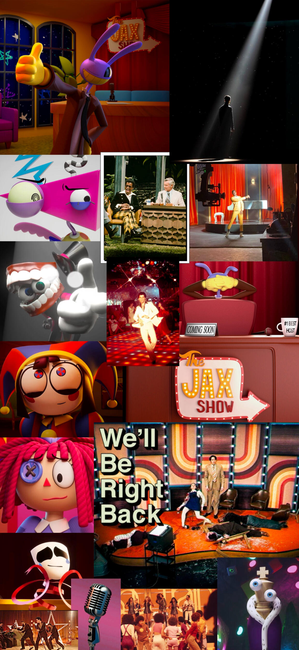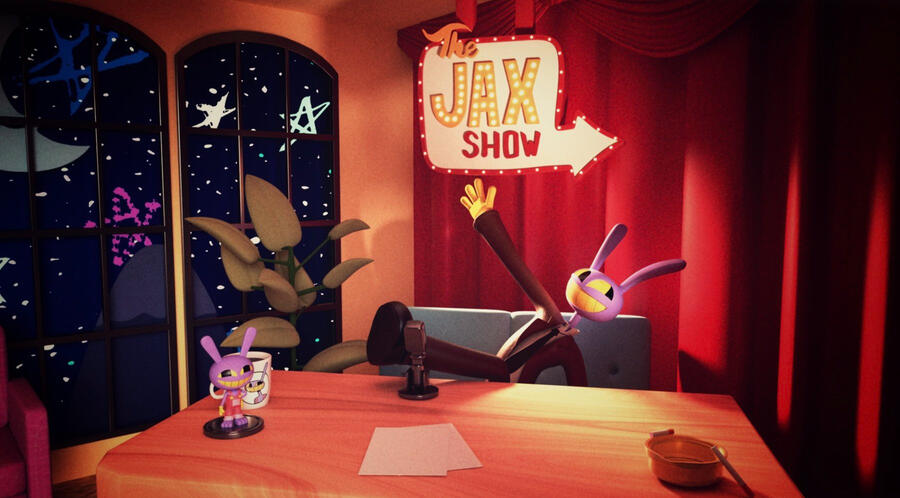 Jax gets the chance to host a late-night talk show with a groovy 70s aesthetic. With Caine as his co-host, chaos is bound to happen as the two take you through the decades from the classic 50s to the slammin' 90s!However, behind Jax’s back is the uprising of a new threat to his show that tests his patience and causes him to lose his mind, showing his true colors to his adoring audience.Join Jax and the gang in this funky, chaotic, music filled adventure that makes the audience get up and dance along! (….literally…)
